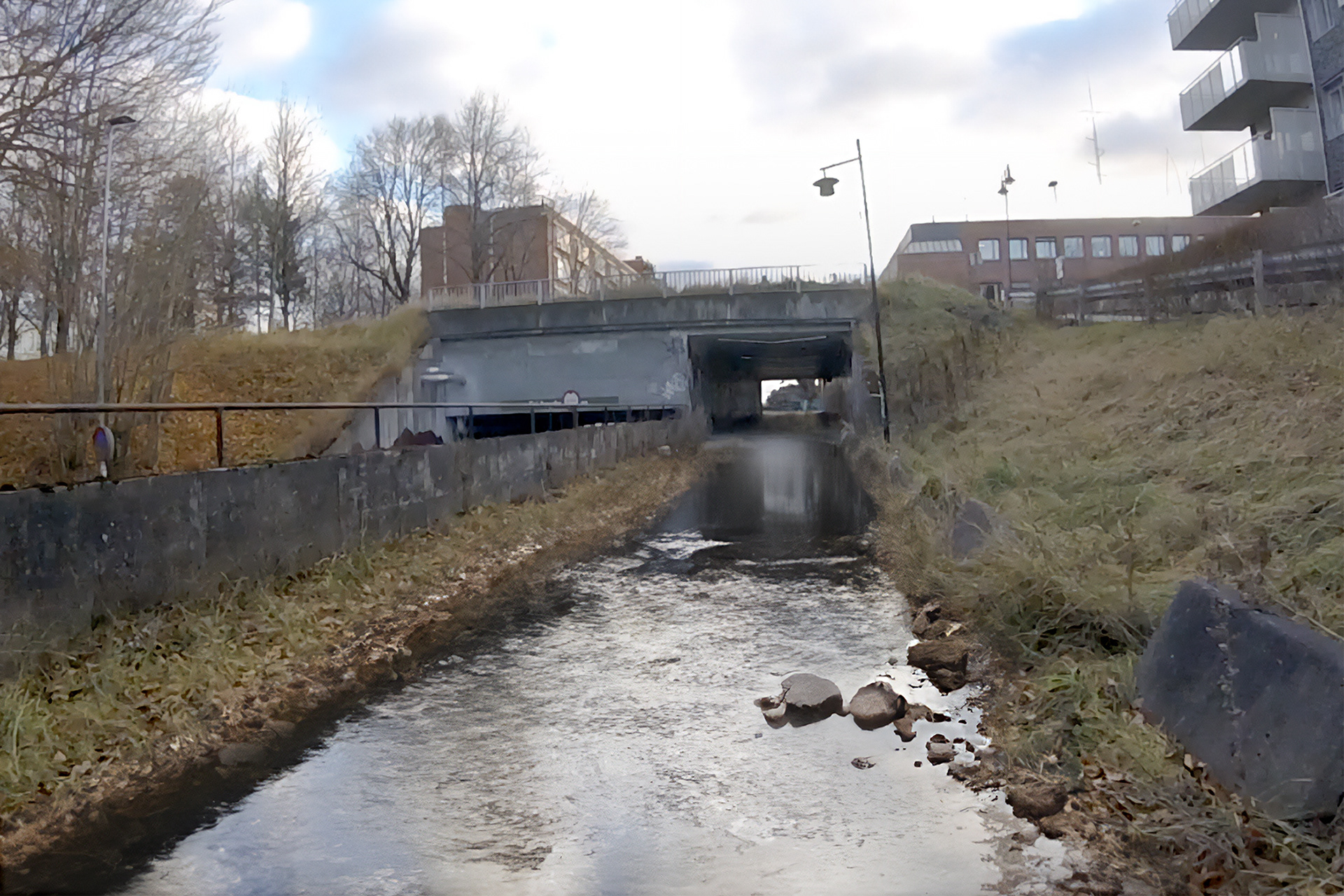 During urban development in the 1970s, the river Lortebekk was placed in pipes, under construction debris and infrastructure.
